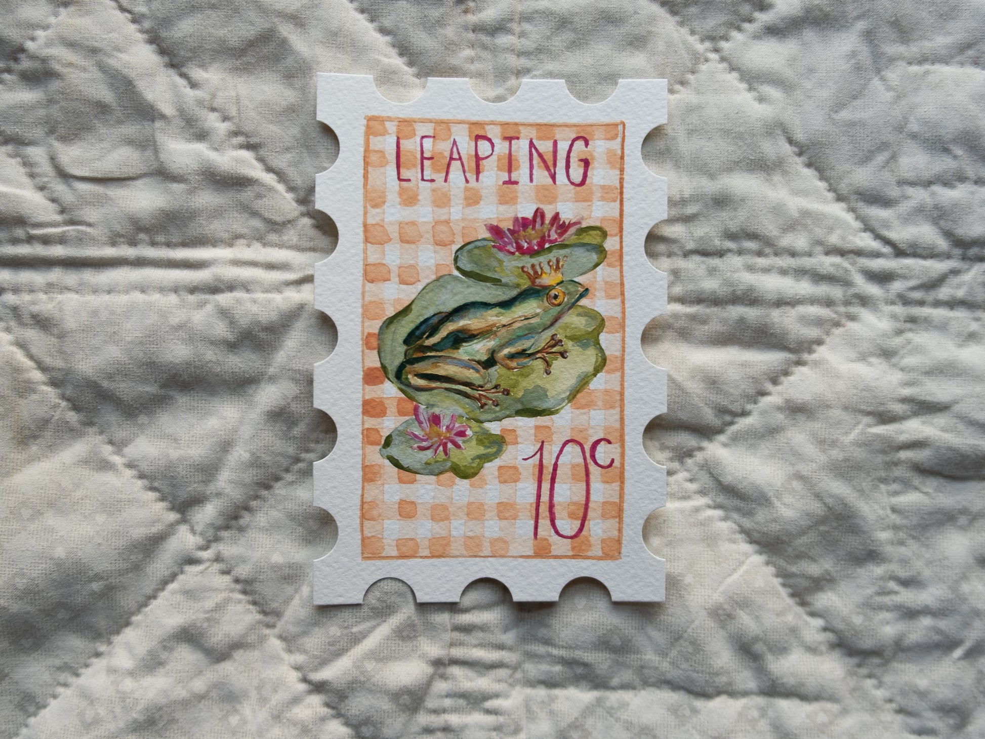 ONE beautifully hand painted vintage inspired 12 days of Christmas Stamp Painting, handpainted in Portland Maine.