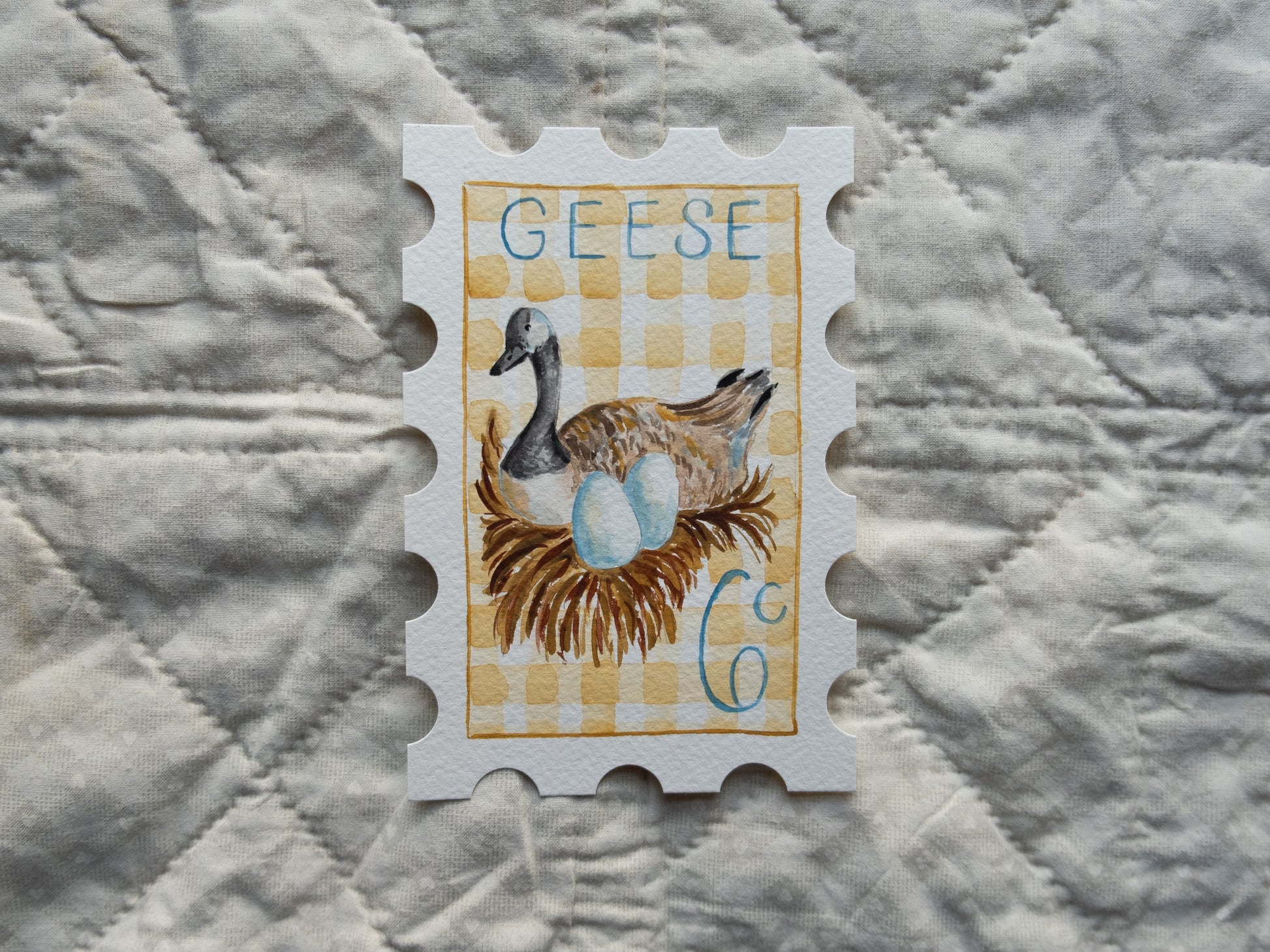 ONE beautifully hand painted vintage inspired 12 days of Christmas Stamp Painting, handpainted in Portland Maine.