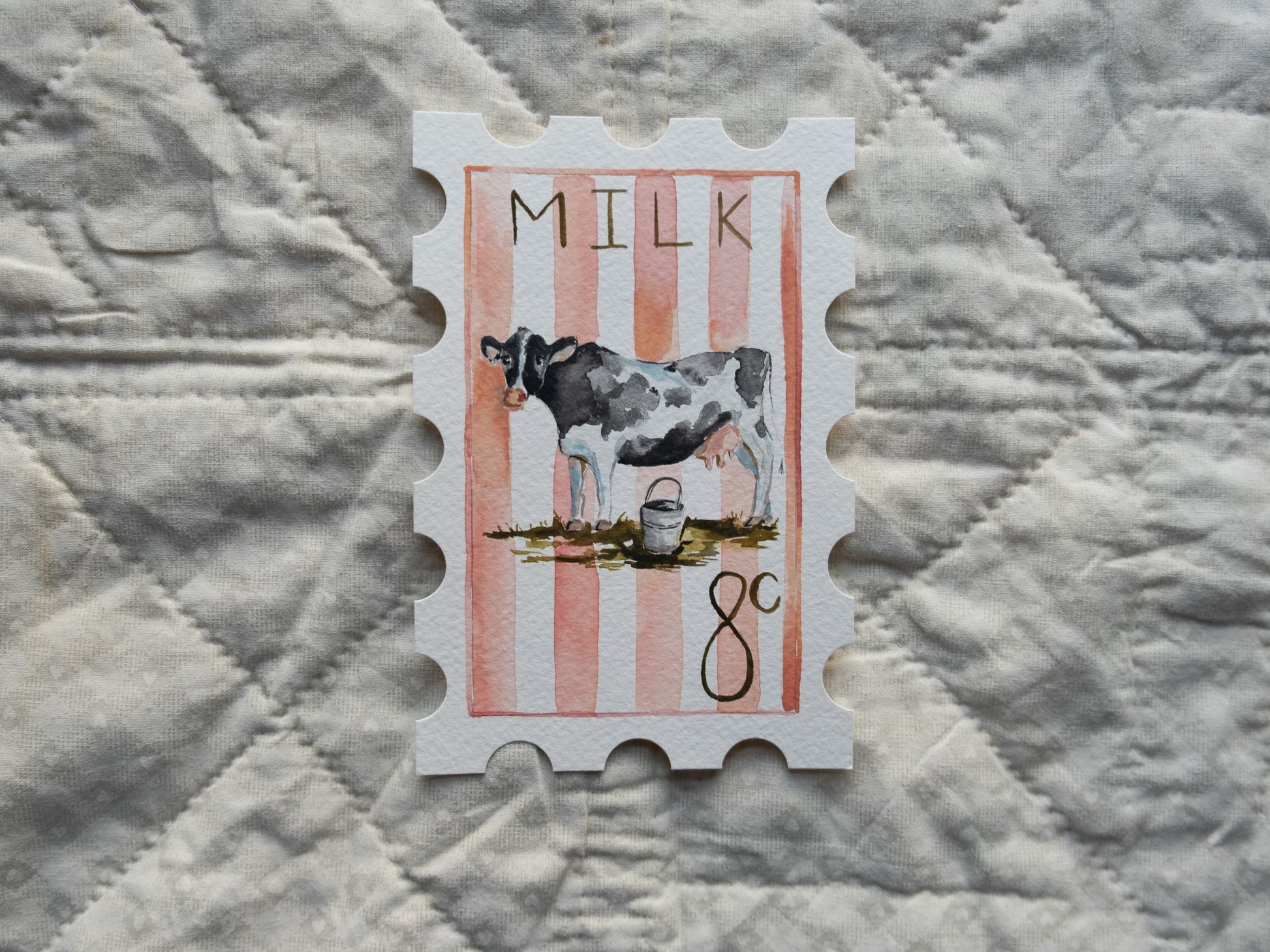 ONE beautifully hand painted vintage inspired 12 days of Christmas Stamp Painting, handpainted in Portland Maine.