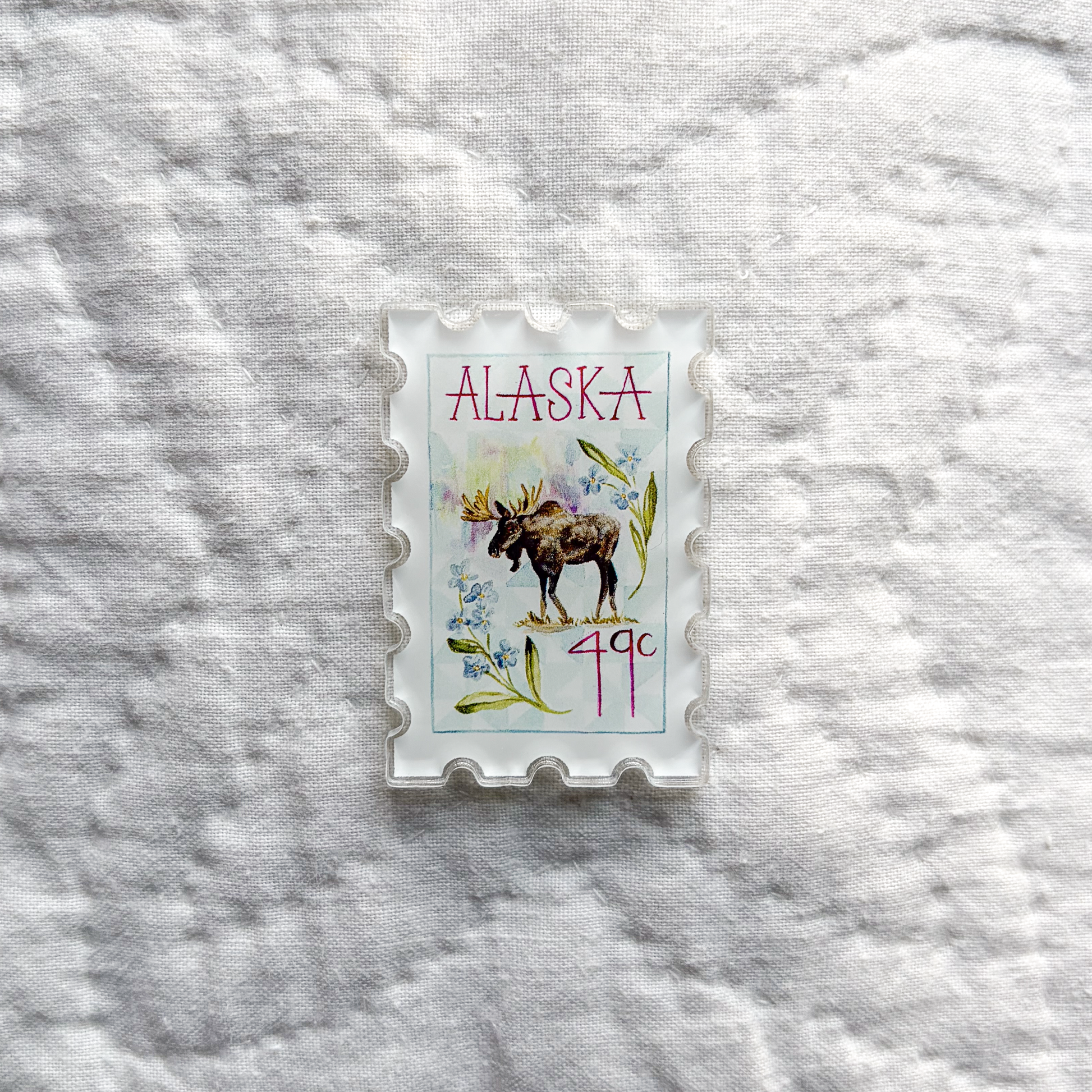 State stamp design is printed on acrylic with a high quality circular magnet affixed to the back.