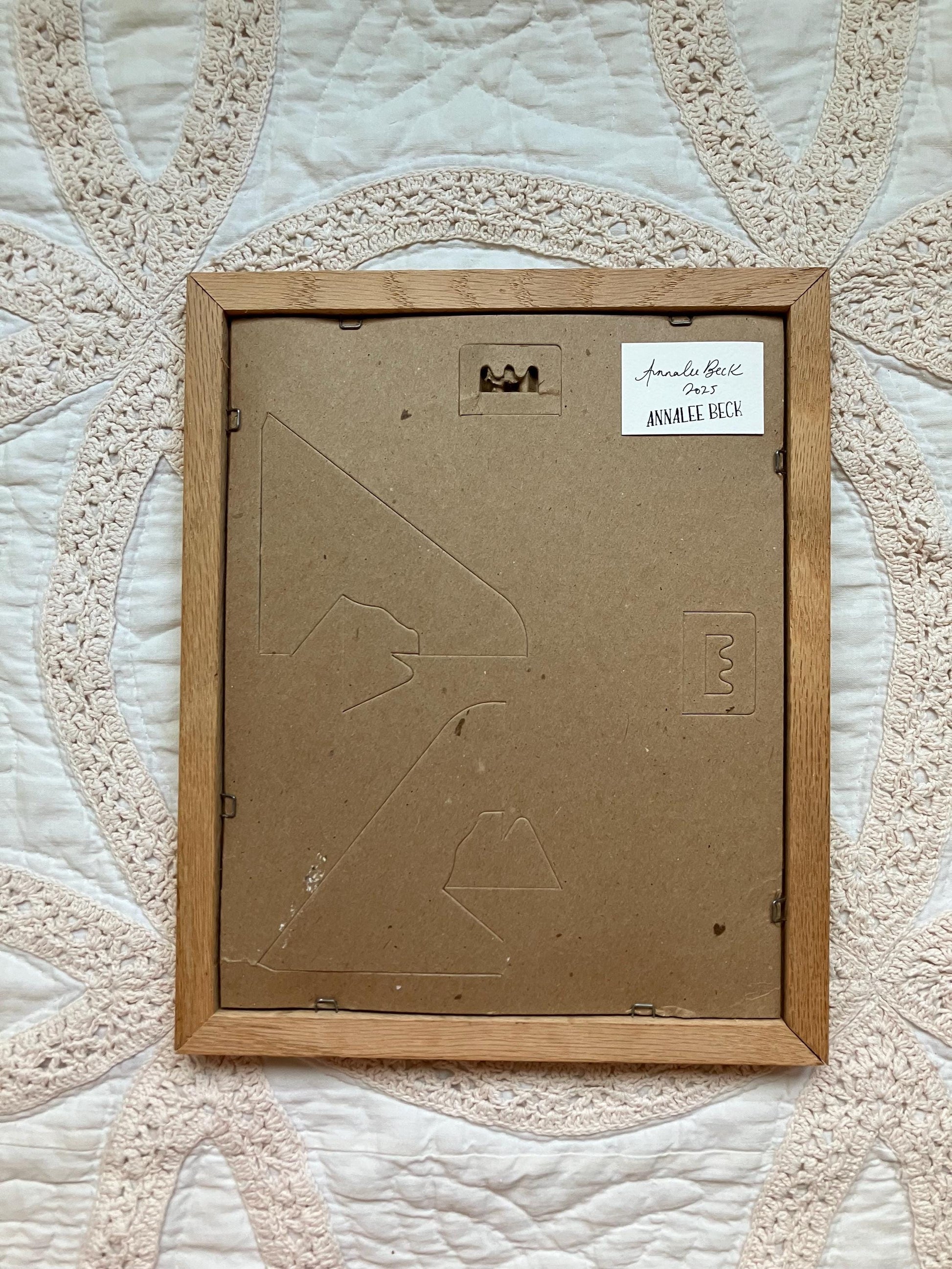 framed in a vintage thrifted wooden frame- scratches and nicks but add to the vintage character