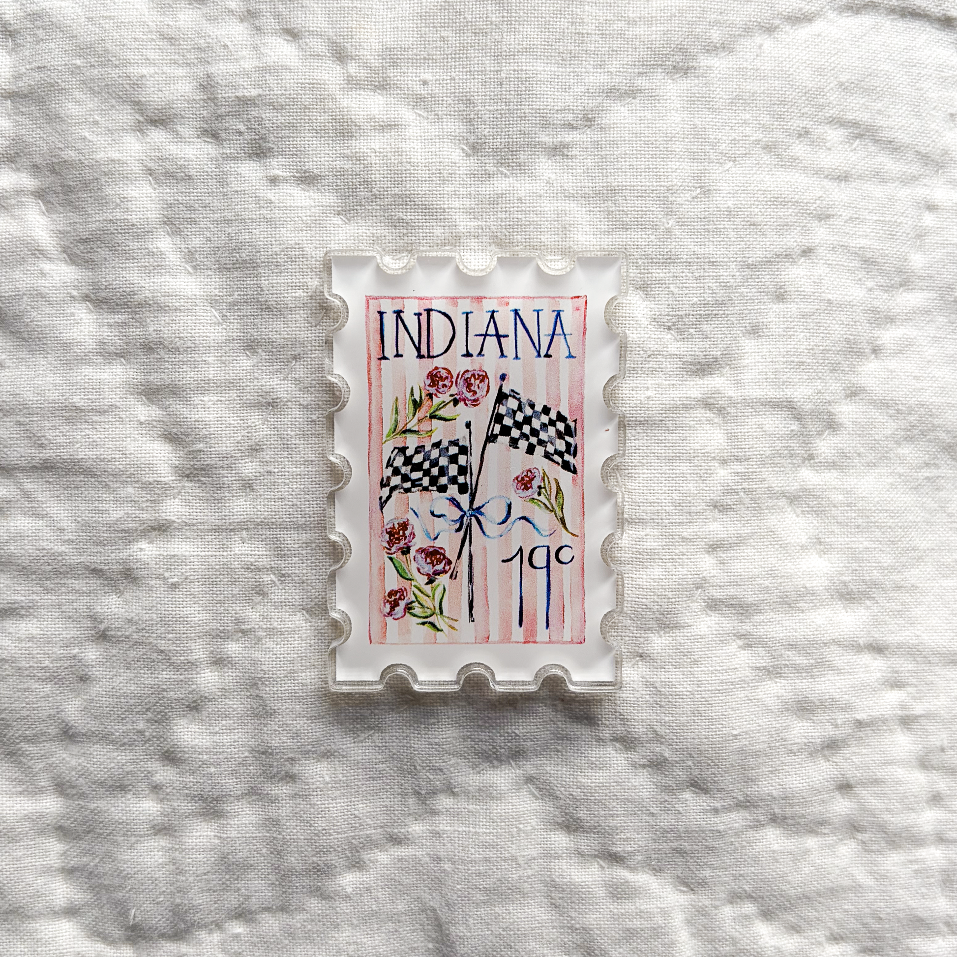 State stamp design is printed on acrylic with a high quality circular magnet affixed to the back.