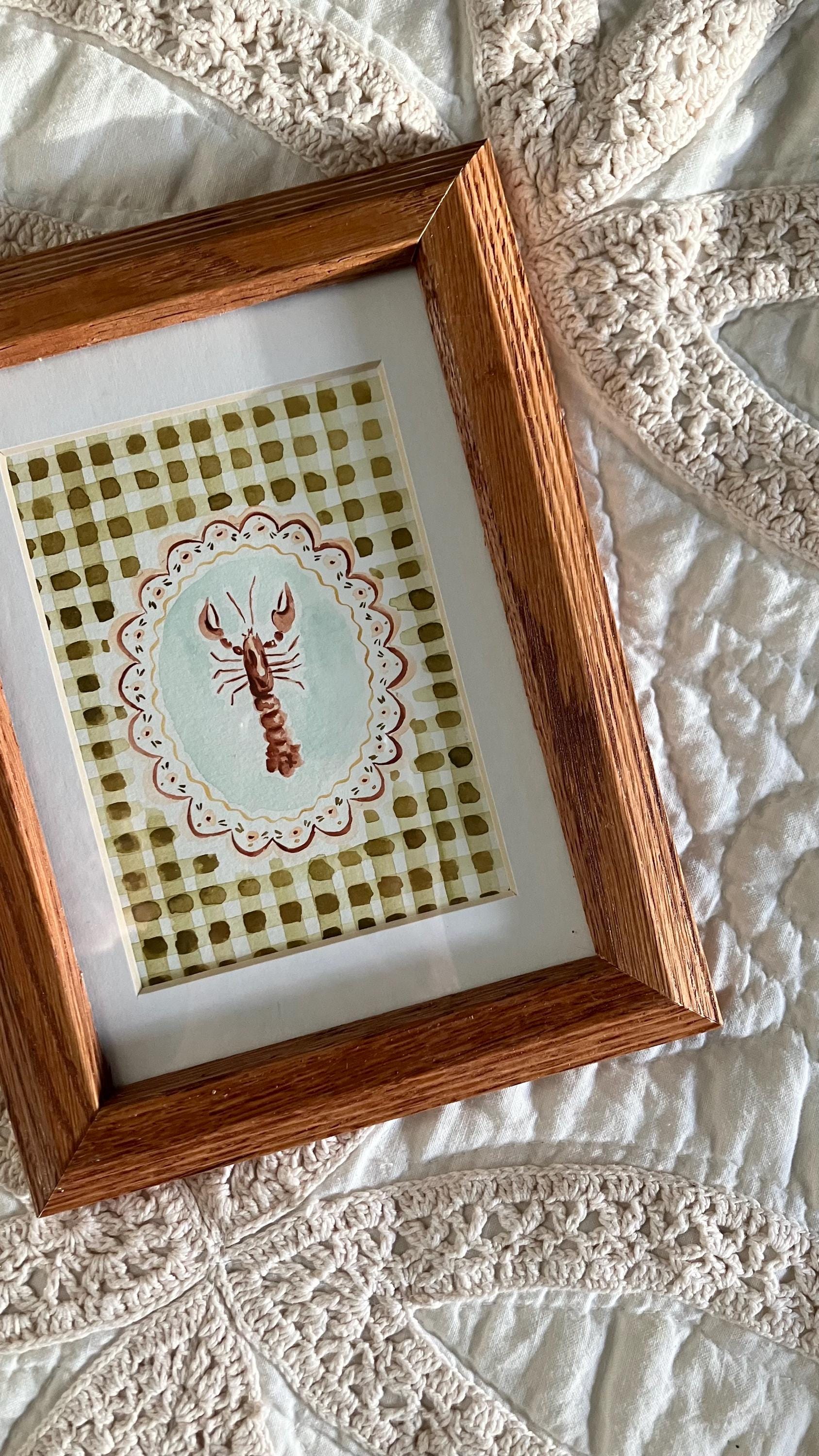 Beautifully hand painted vintage inspired lobster watercolor, handpainted in Portland Maine.