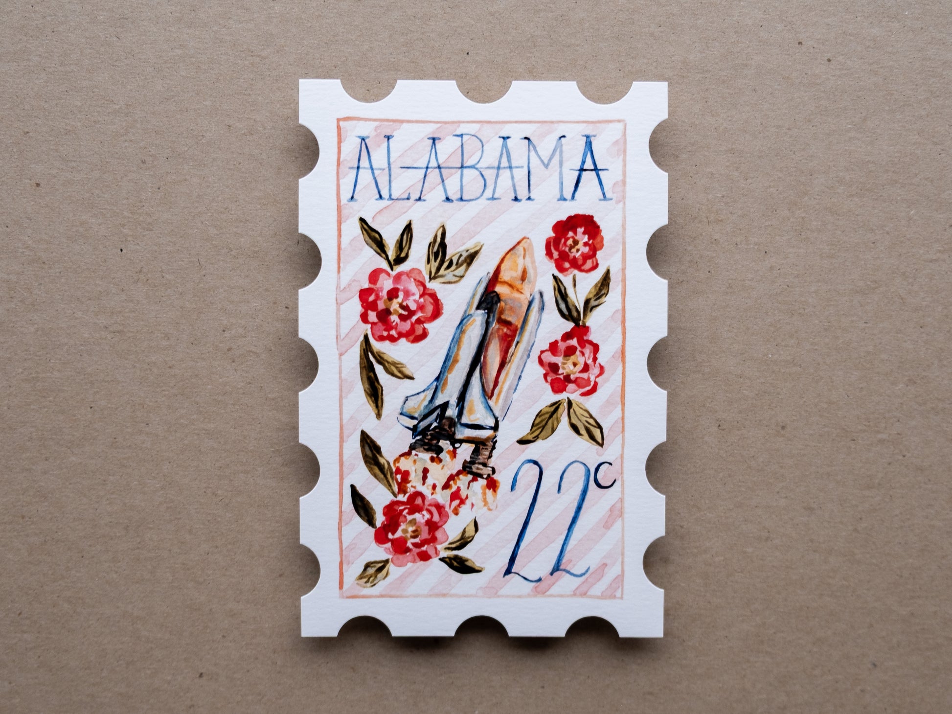Due to the printing process, the beige background and stamp colors may vary between prints.
