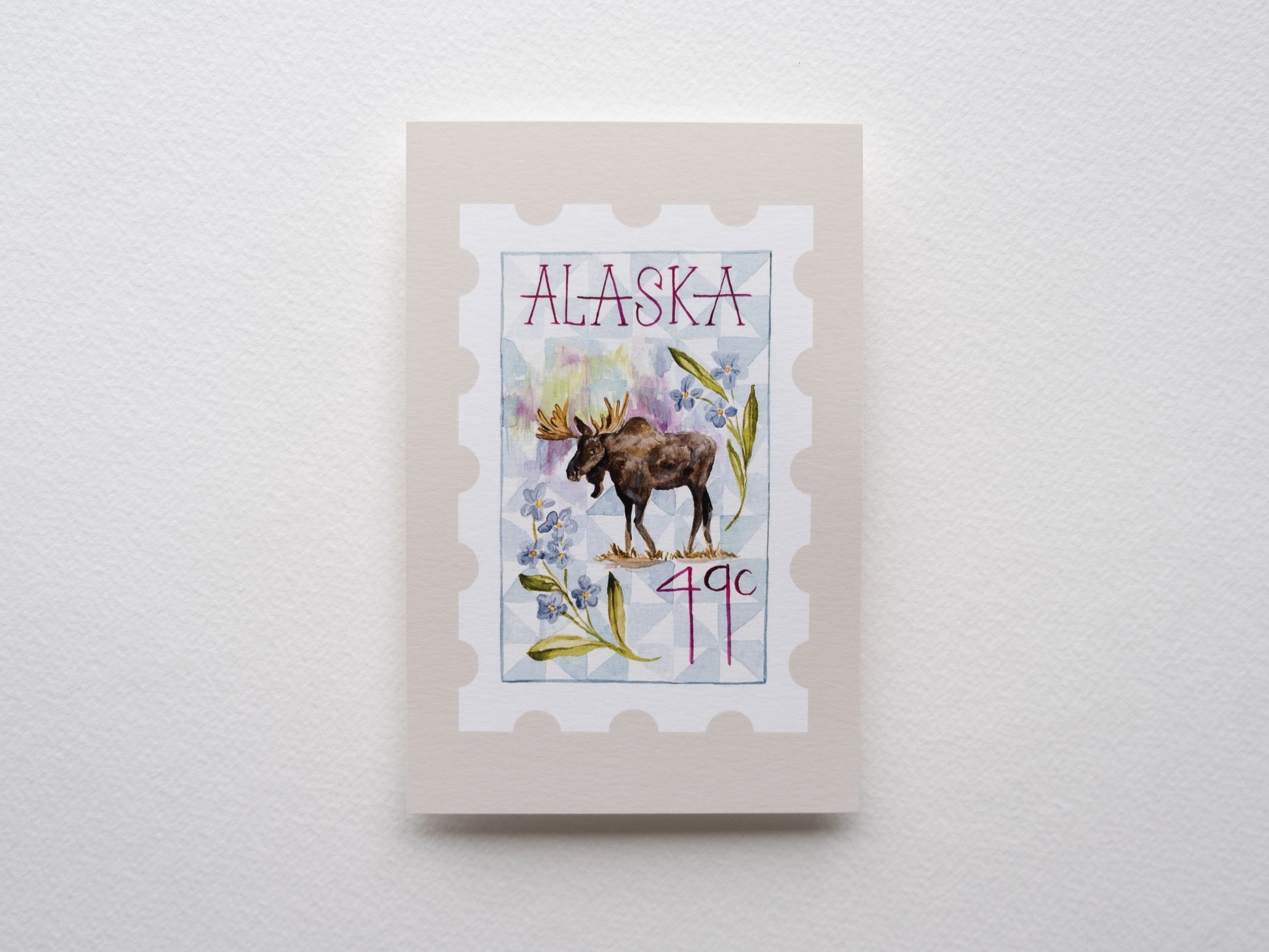 Due to the printing process, the beige background and stamp colors may vary between prints.
