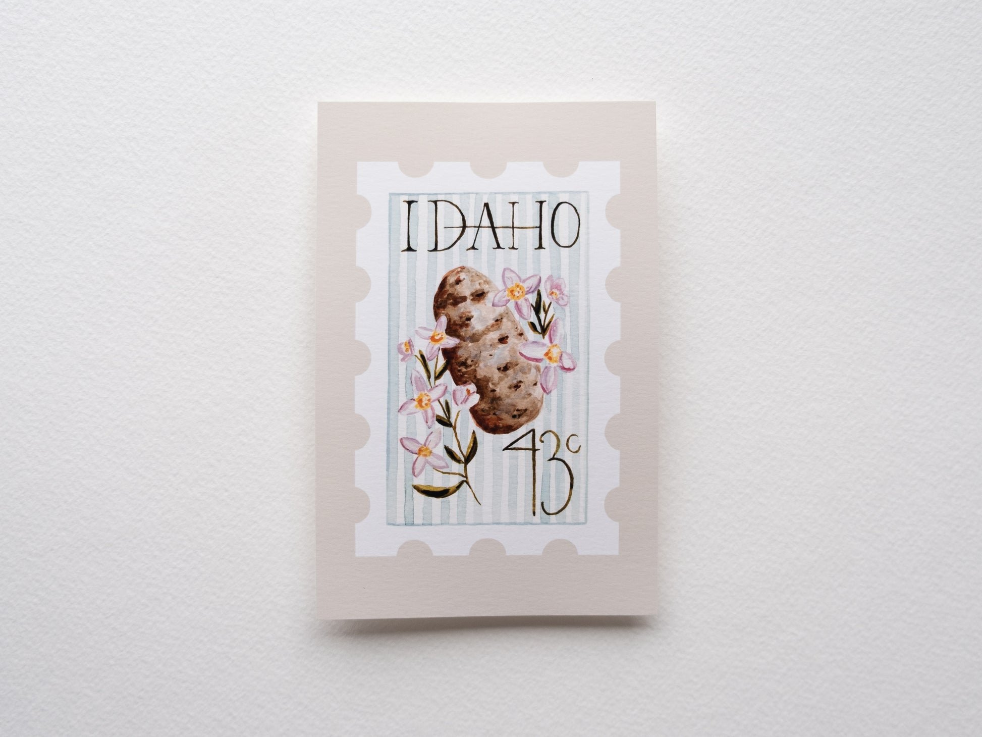 Due to the printing process, the beige background and stamp colors may vary between prints.