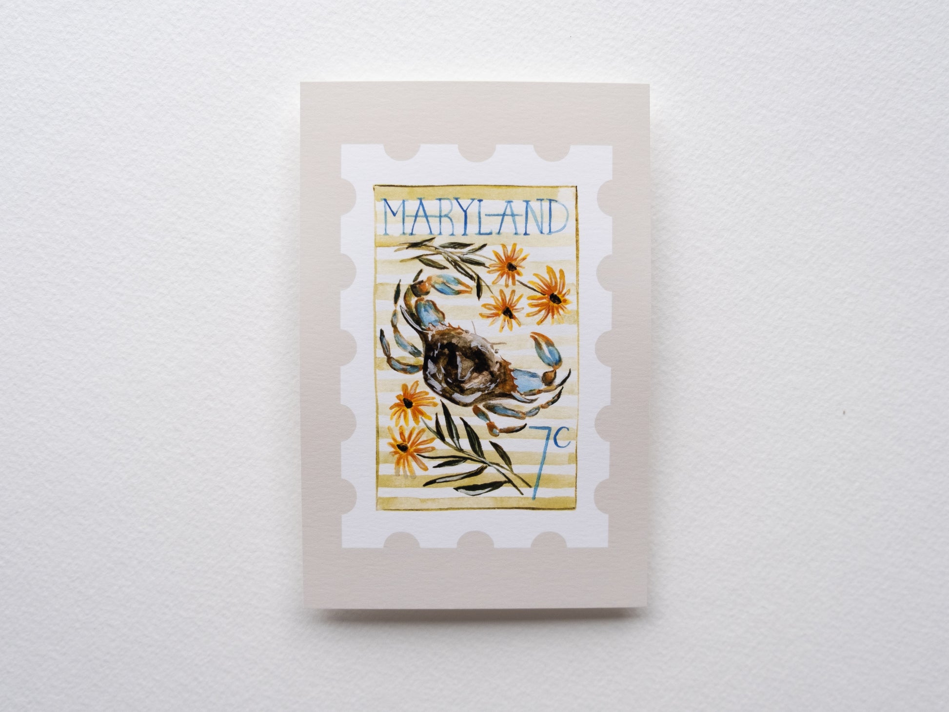 Due to the printing process, the beige background and stamp colors may vary between prints.
