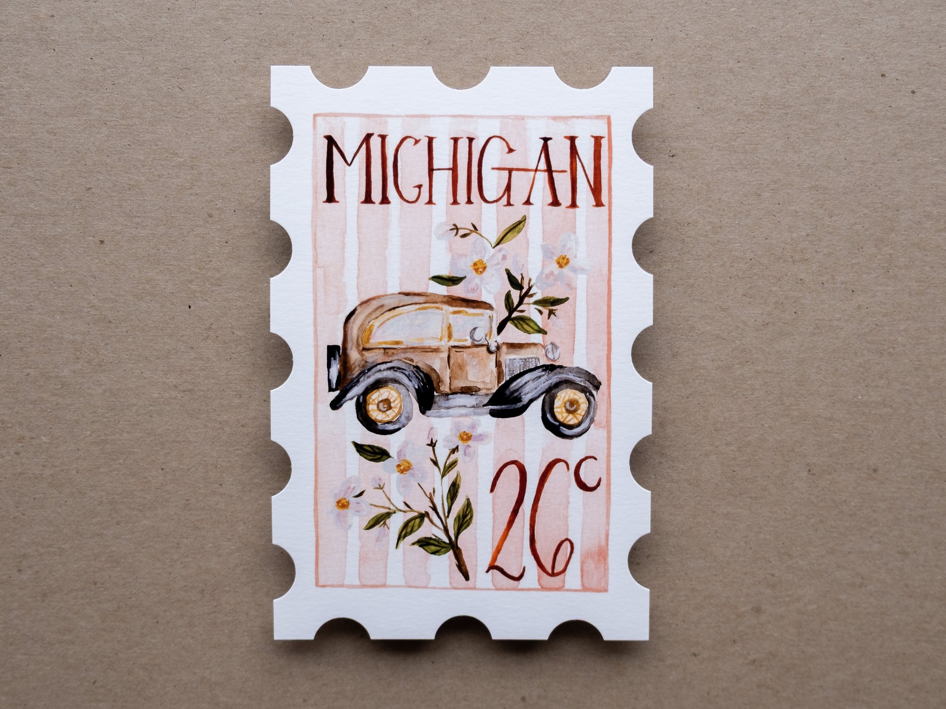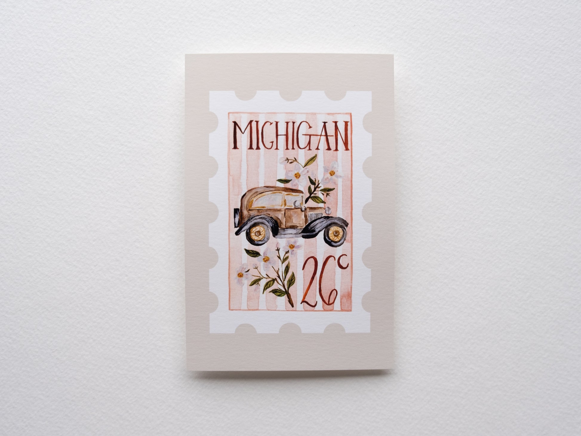 Due to the printing process, the beige background and stamp colors may vary between prints.