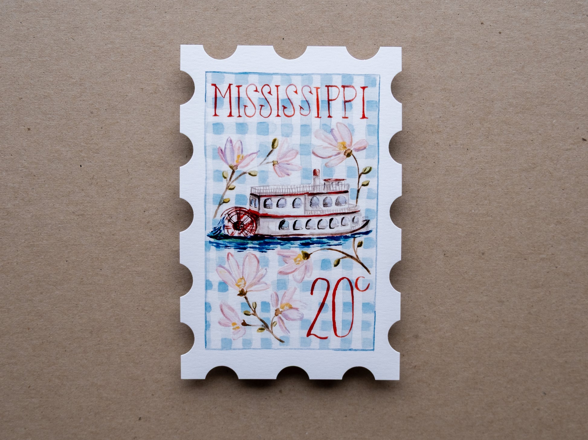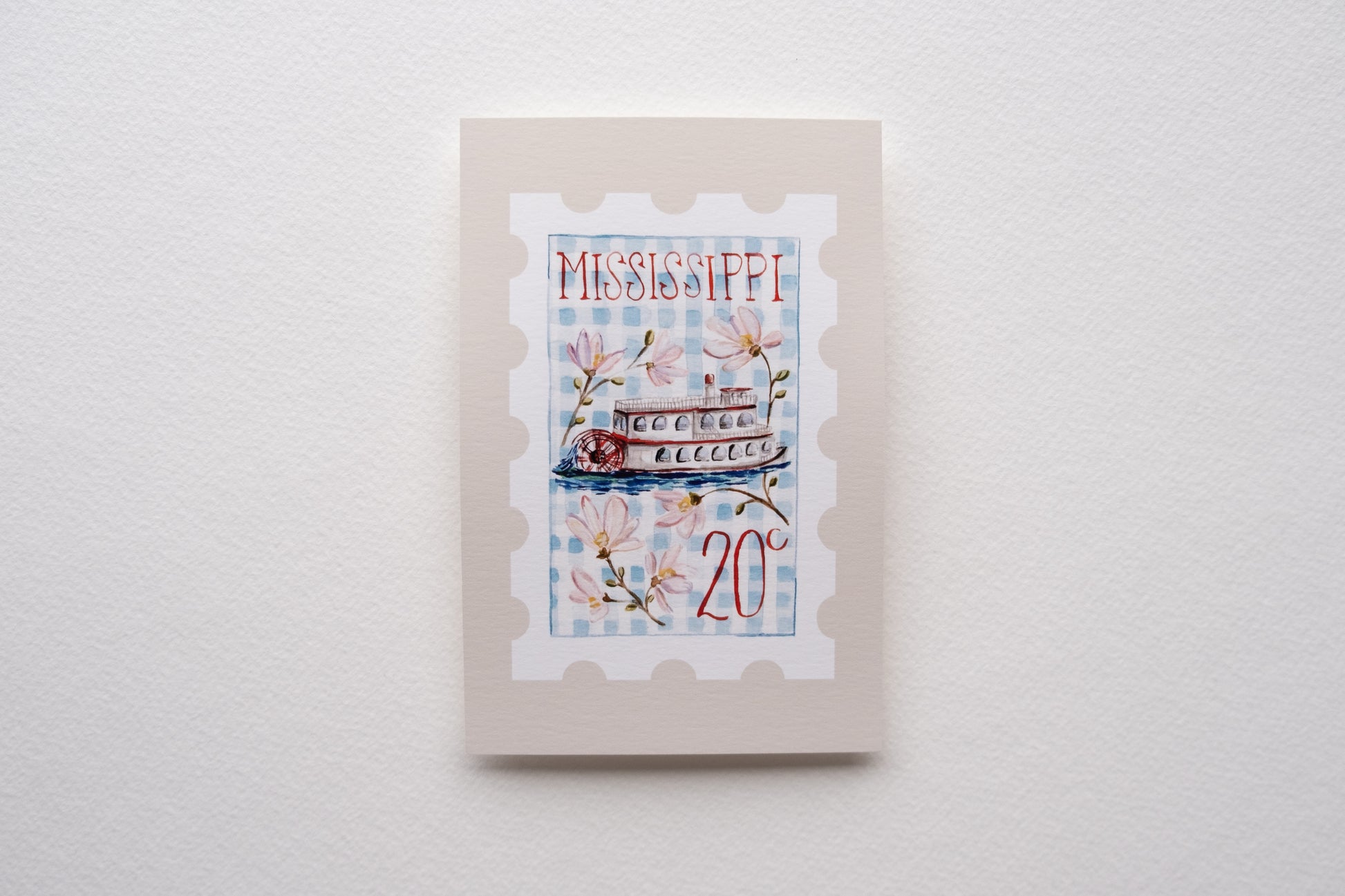 Due to the printing process, the beige background and stamp colors may vary between prints.