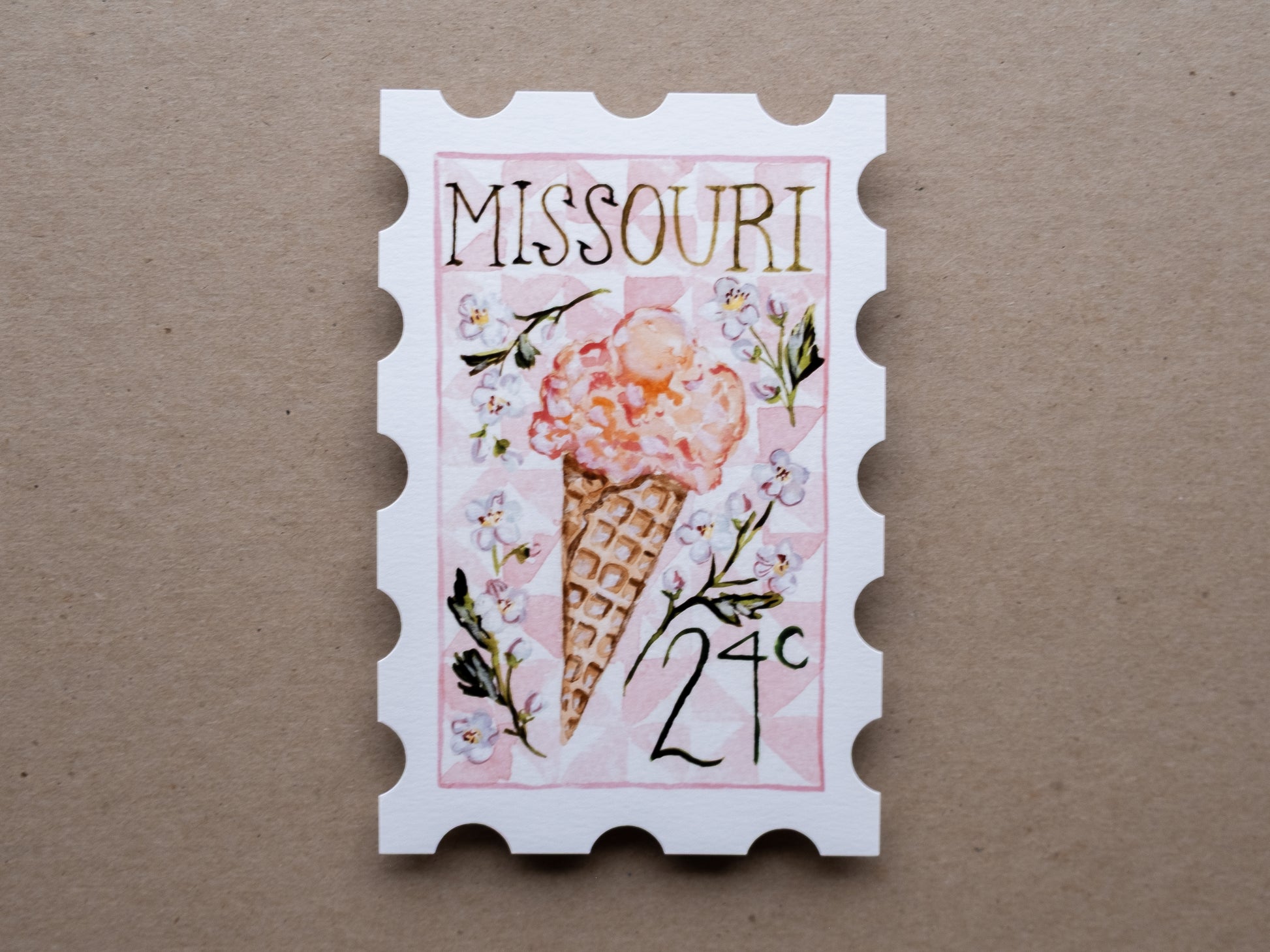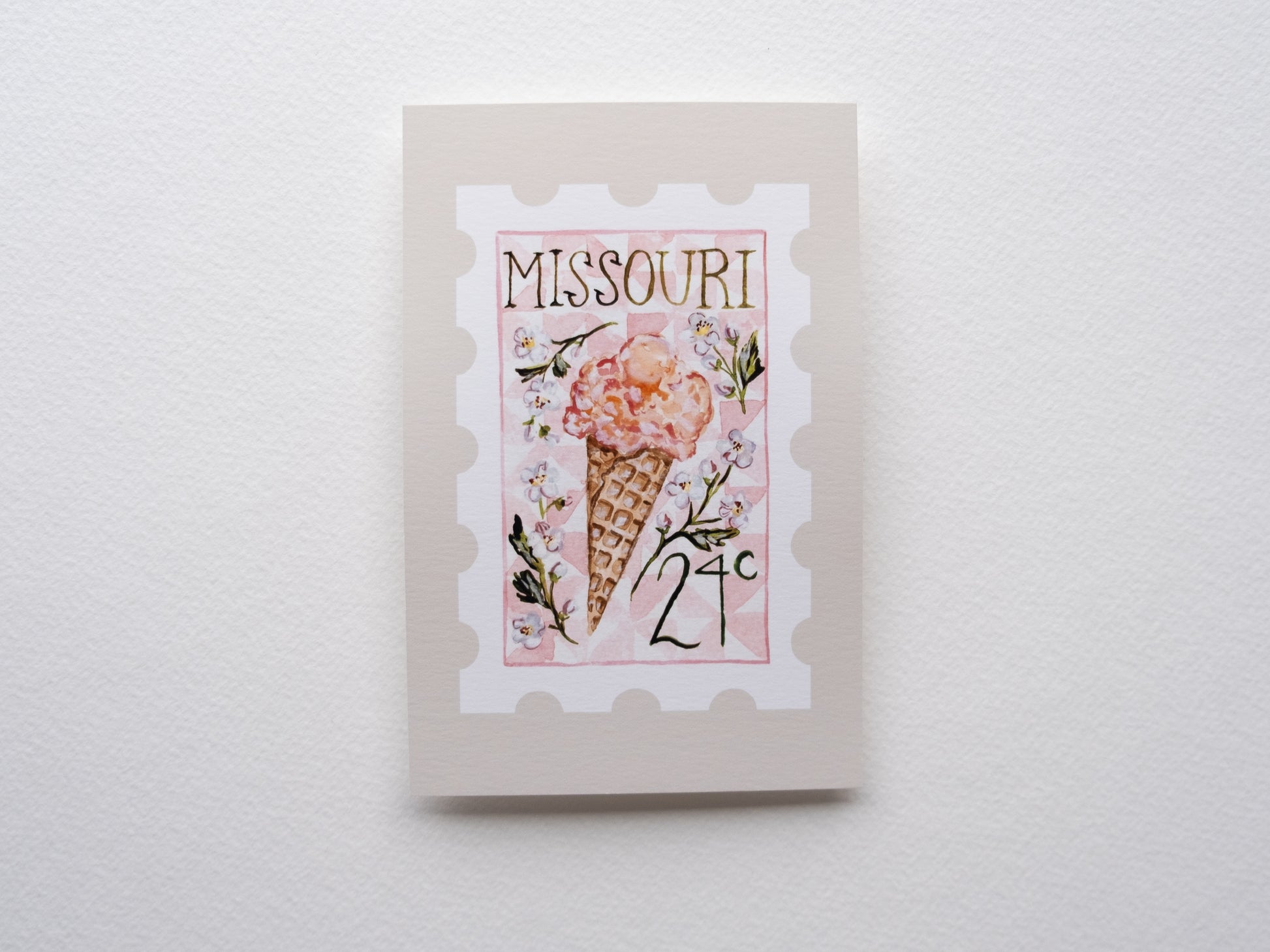 Due to the printing process, the beige background and stamp colors may vary between prints.