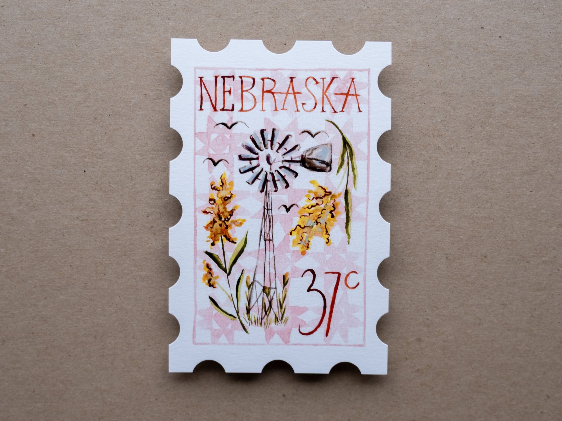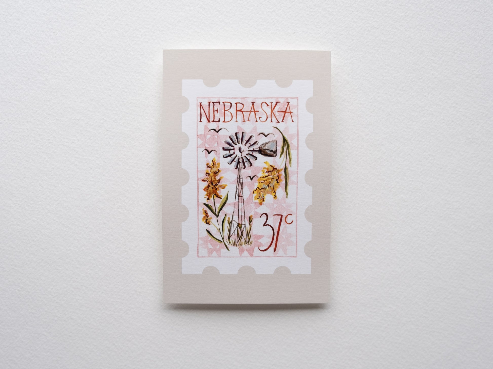 Due to the printing process, the beige background and stamp colors may vary between prints.