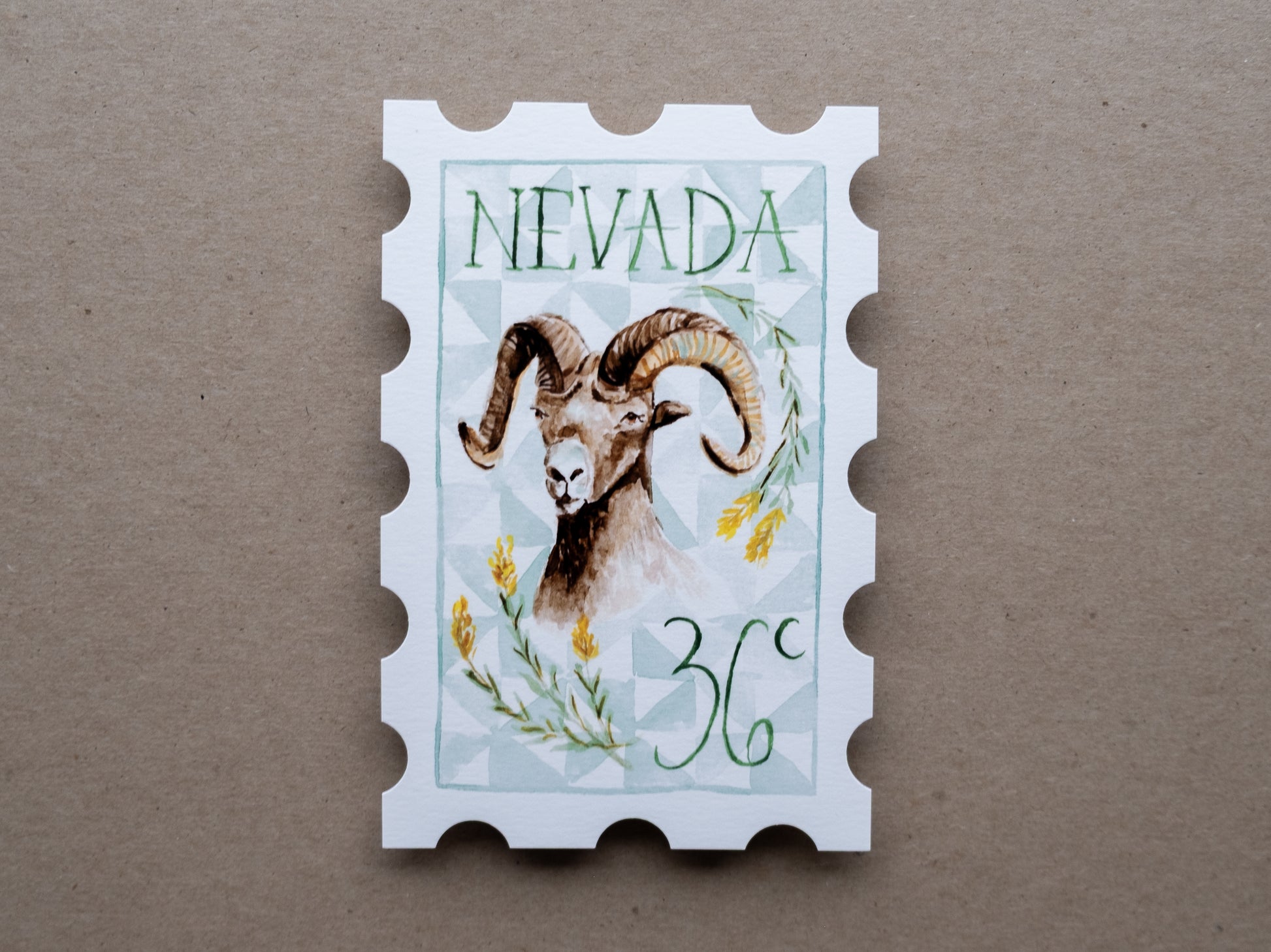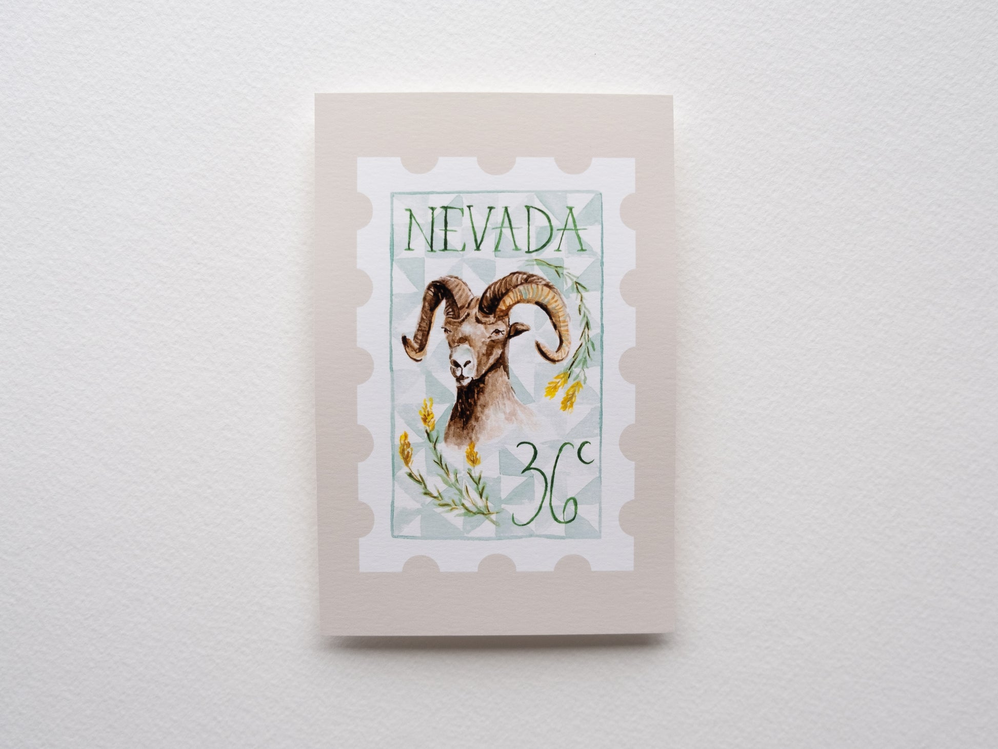Due to the printing process, the beige background and stamp colors may vary between prints.