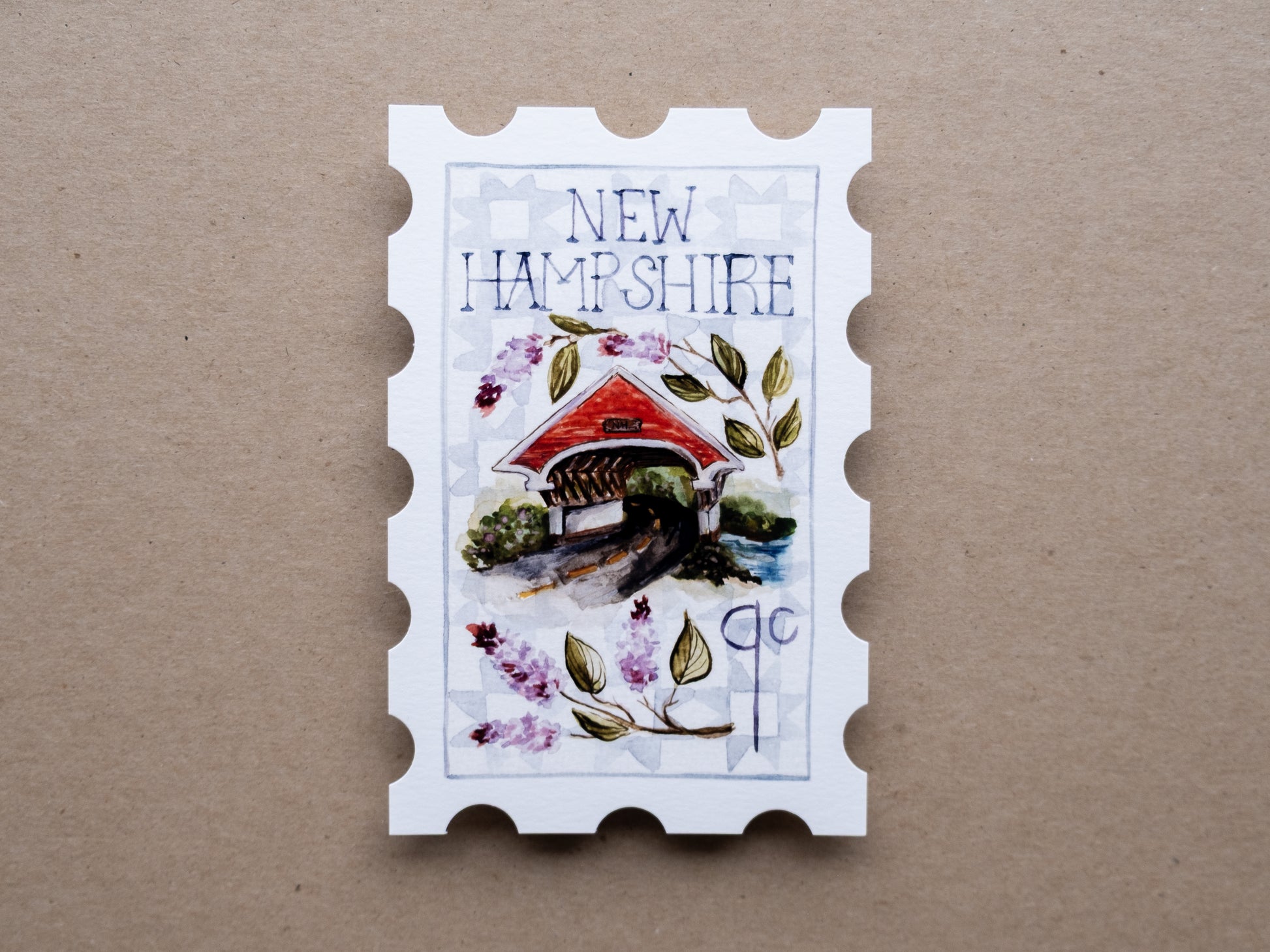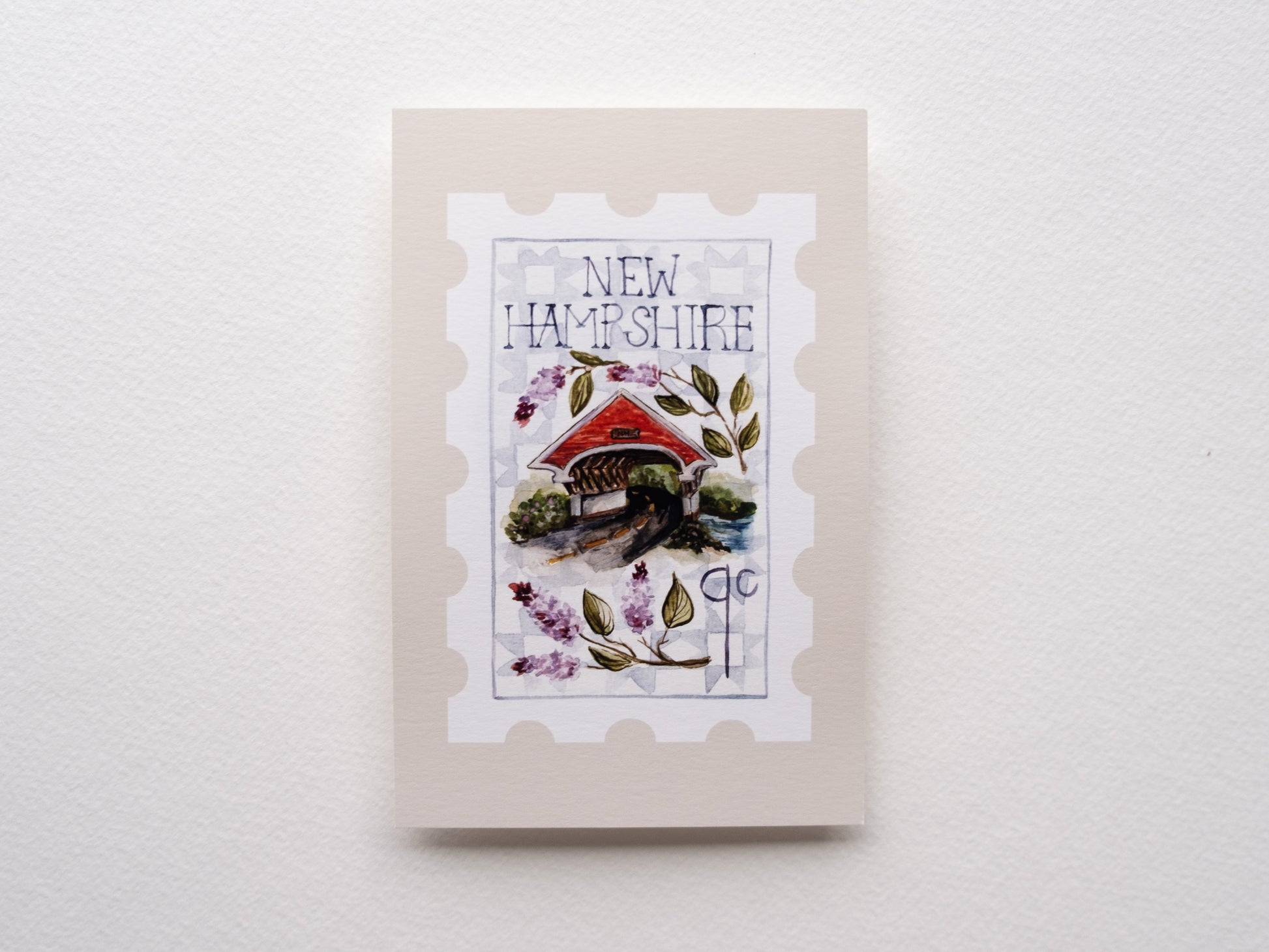 Due to the printing process, the beige background and stamp colors may vary between prints.