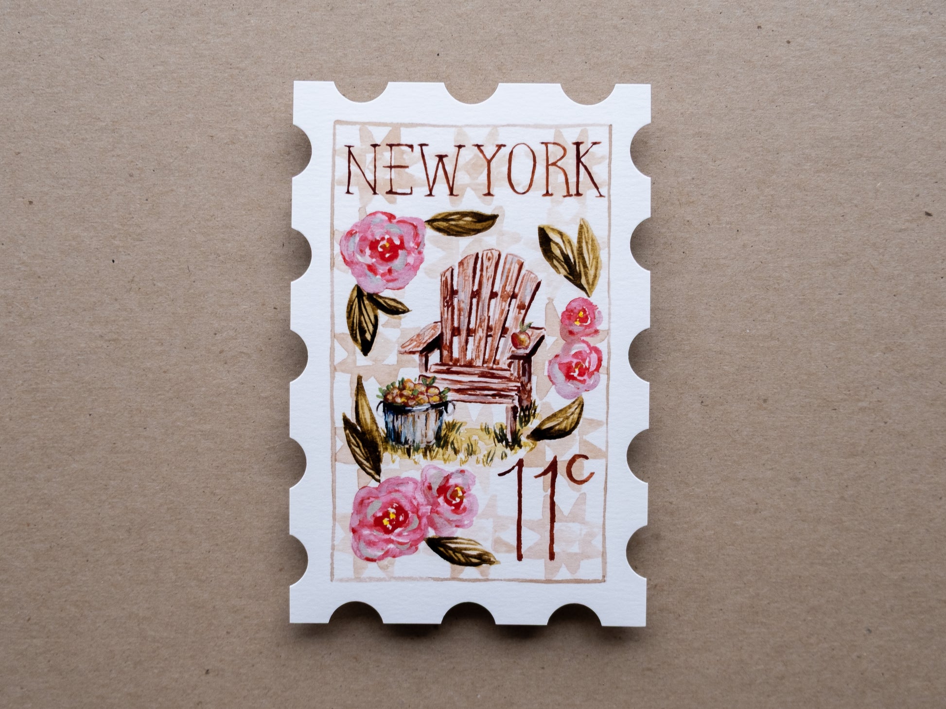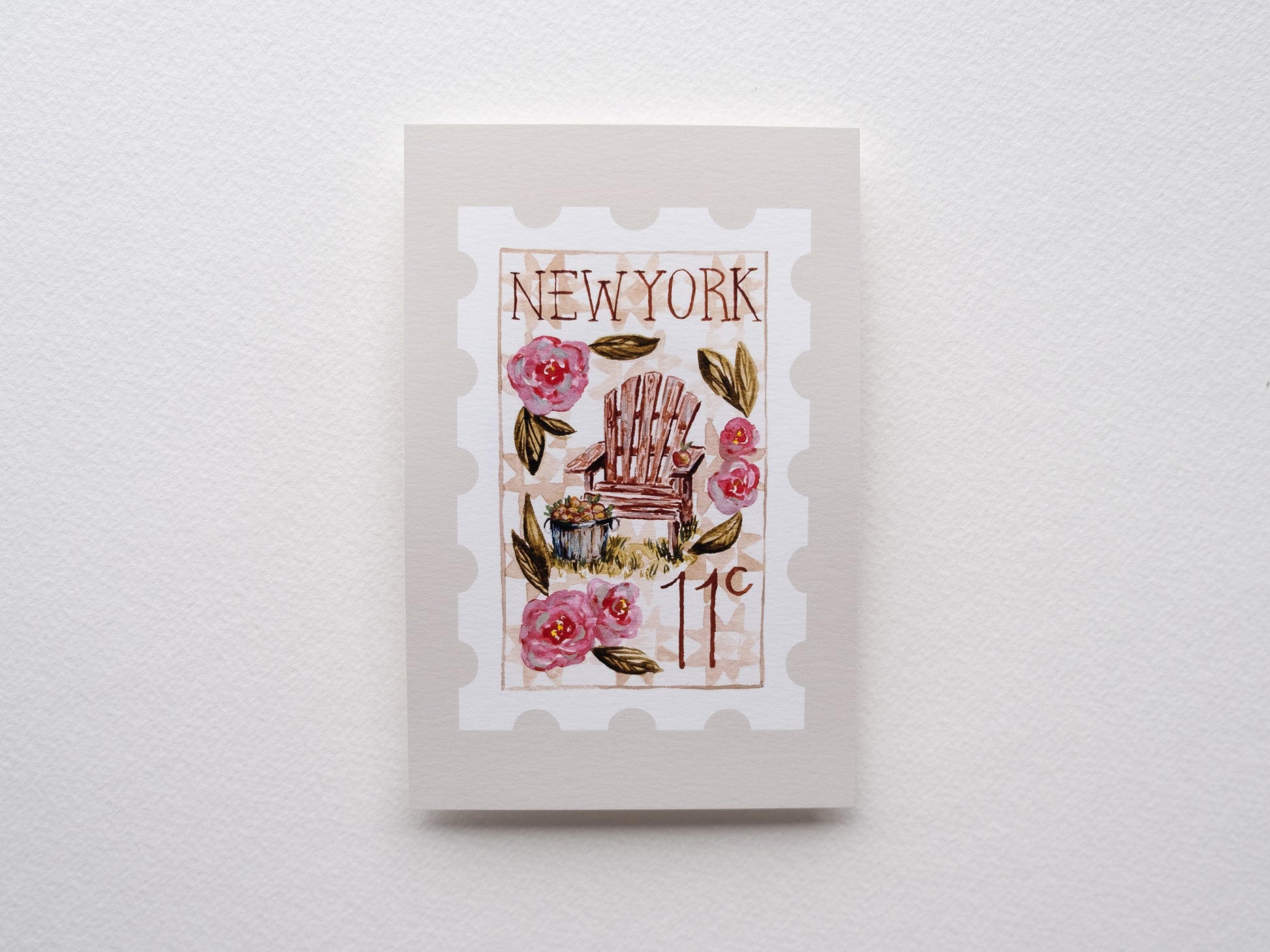 Due to the printing process, the beige background and stamp colors may vary between prints.