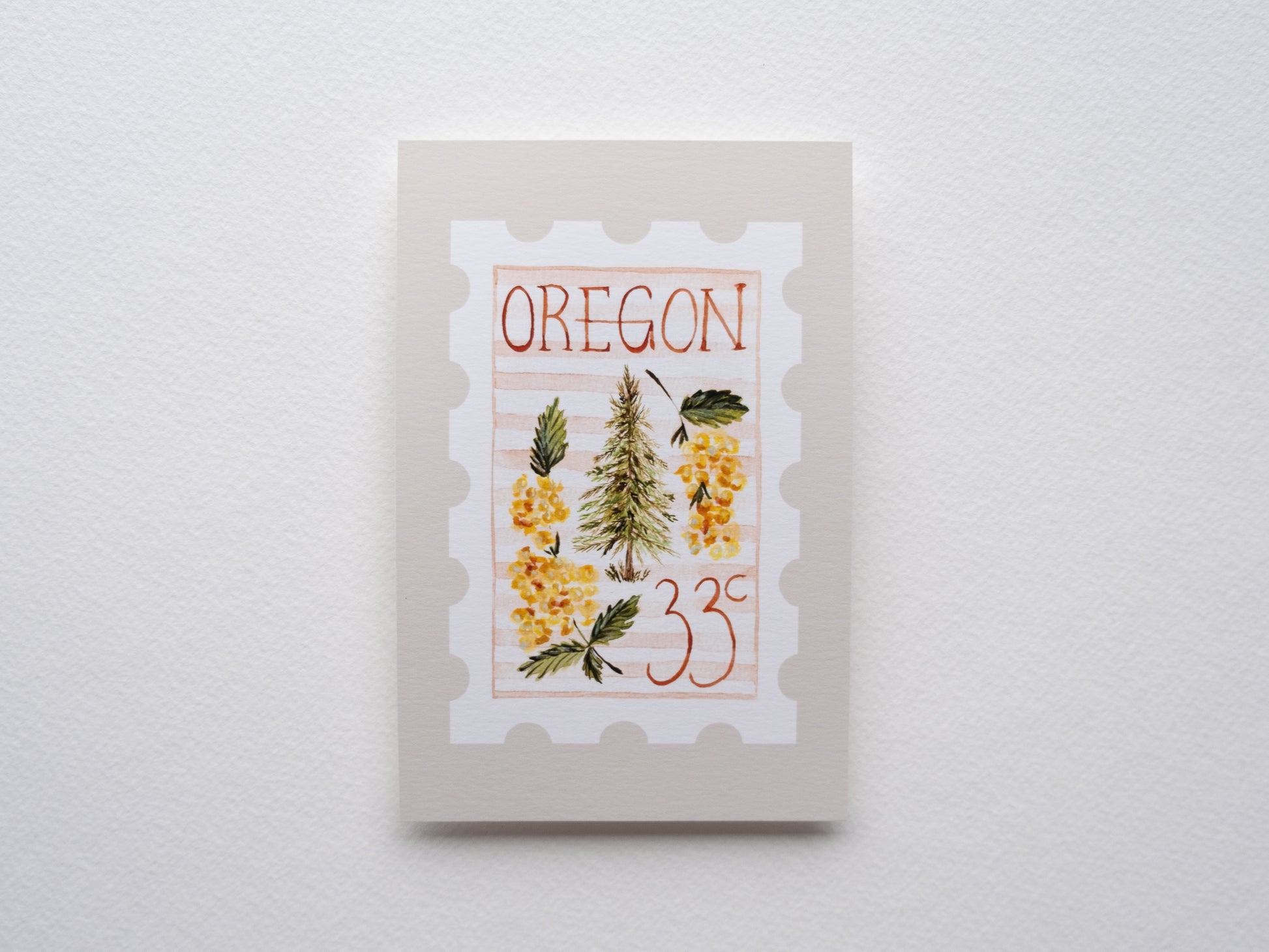Due to the printing process, the beige background and stamp colors may vary between prints.