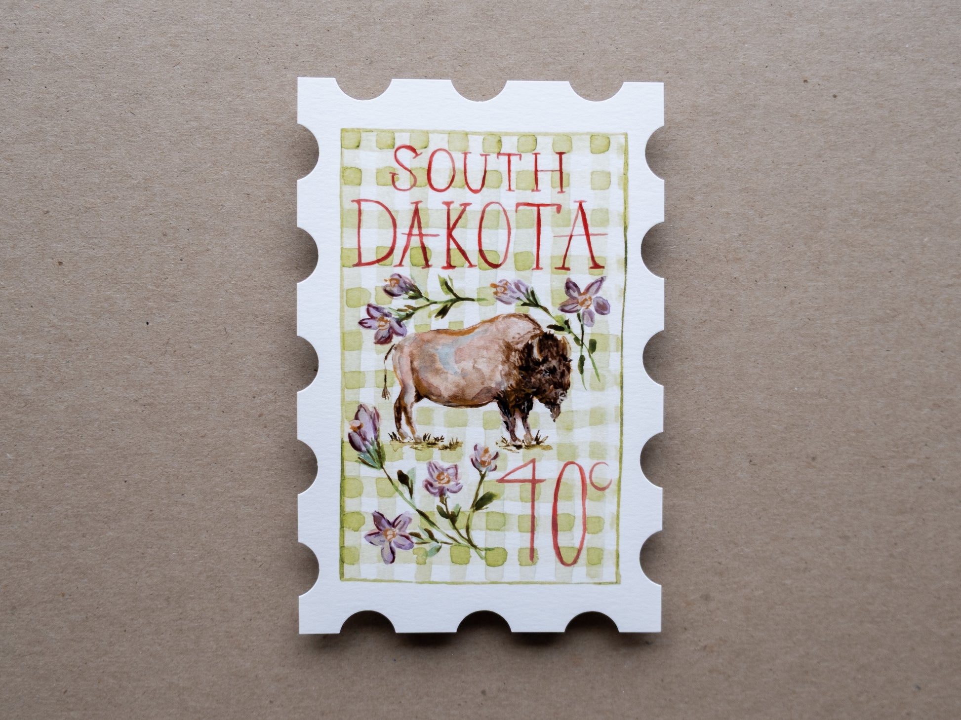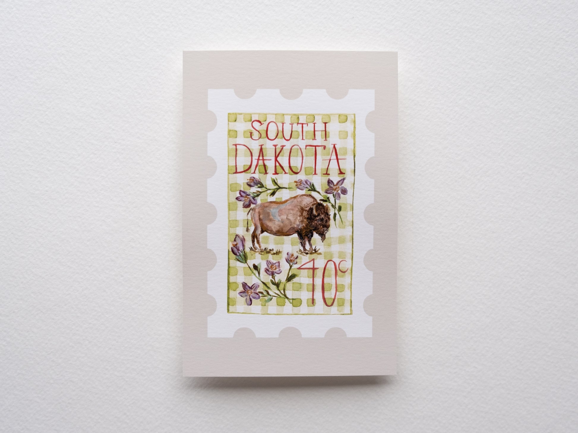 Due to the printing process, the beige background and stamp colors may vary between prints.