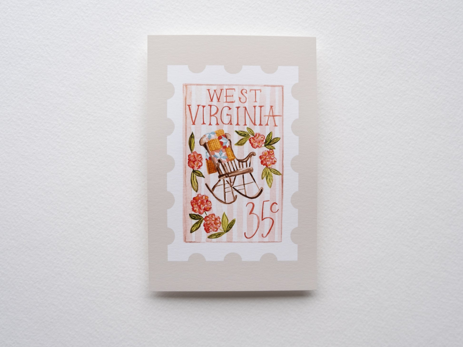 Due to the printing process, the beige background and stamp colors may vary between prints.